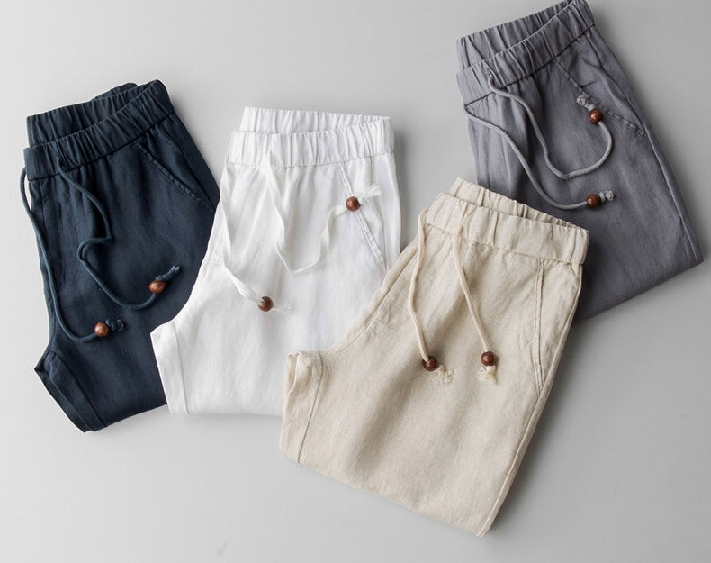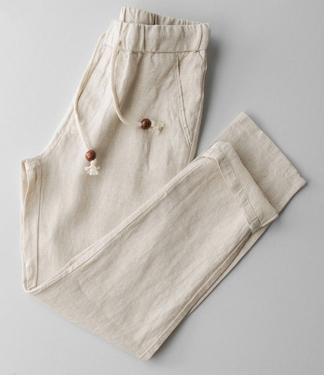 2025 Autumn Plus Size Loose Straight Polyester/Cotton Linen Men's Casual Distressed Vintage Style Eco-Friendly Custom Trousers