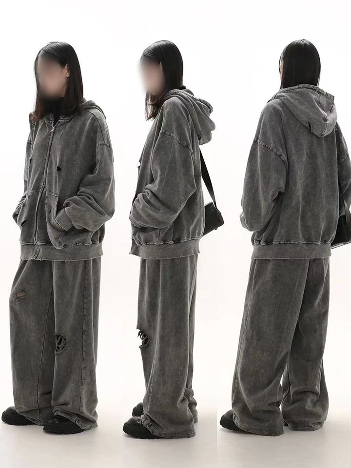 2025 Autumn Winter Distressed Zipper Washed Heavy Loose Retro American Trendy Top Versatile Couple Style ODM DDP Shipping