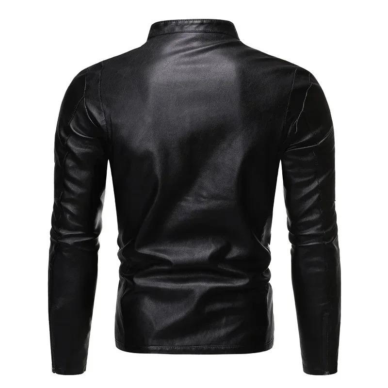 2025 Autumn Winter Men's Fashion Slim Lapel Leather Jacket Handmade Canvas PU Jacket Handsome Motorcycle jacket for men