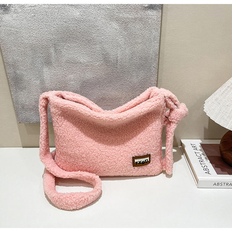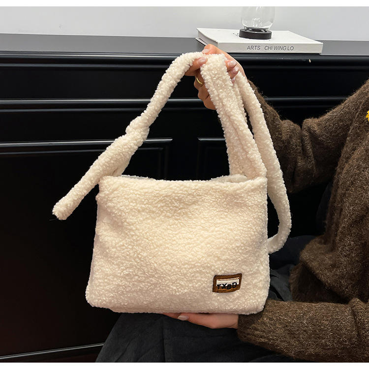 2025 Autumn Winter Trendy Korean Style Plush Crossbody Shoulder Bag Large Capacity for Commuting