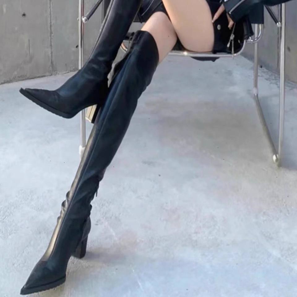 2025 Autumn-Winter Women's Western Edgy Over-the-Knee Boots Pointed-Toe Stretch Slim-Fit Chunky Heel Non-Slip-Down Riding Boots