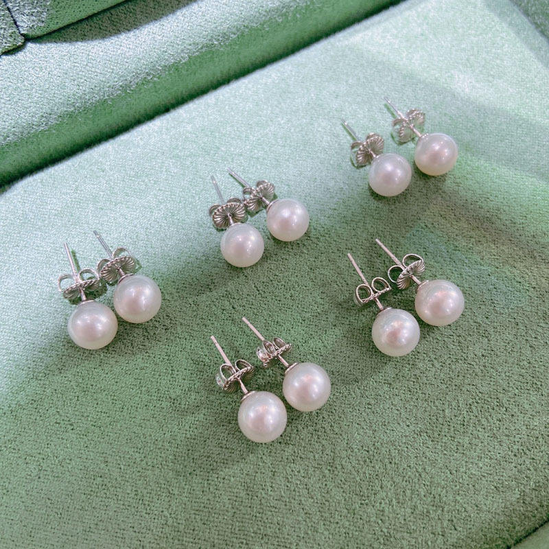 2025 Basic Earnail Female Ornament 7-7.5mm Freshwater Pearl Round Beads S925 Silver Needle Non-Core Gift for Earrings