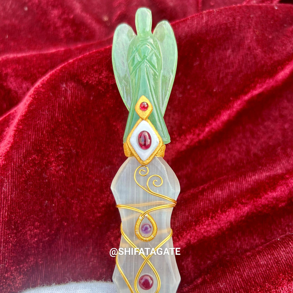 Product Name:Green aventurine Angel And Selenite Wire Wrap Wand Crystal Wand