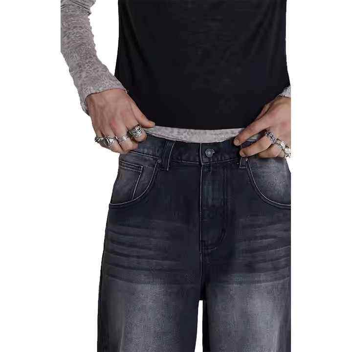 2025 Best Quality Men's Denim Jeans Casual Loose Fit Jeans Oversize Men High Waisted Straight Pants Men Acid Wash Denim