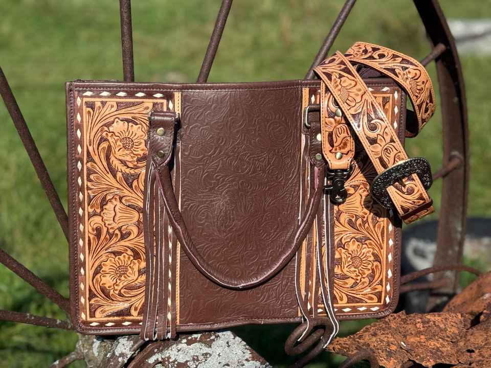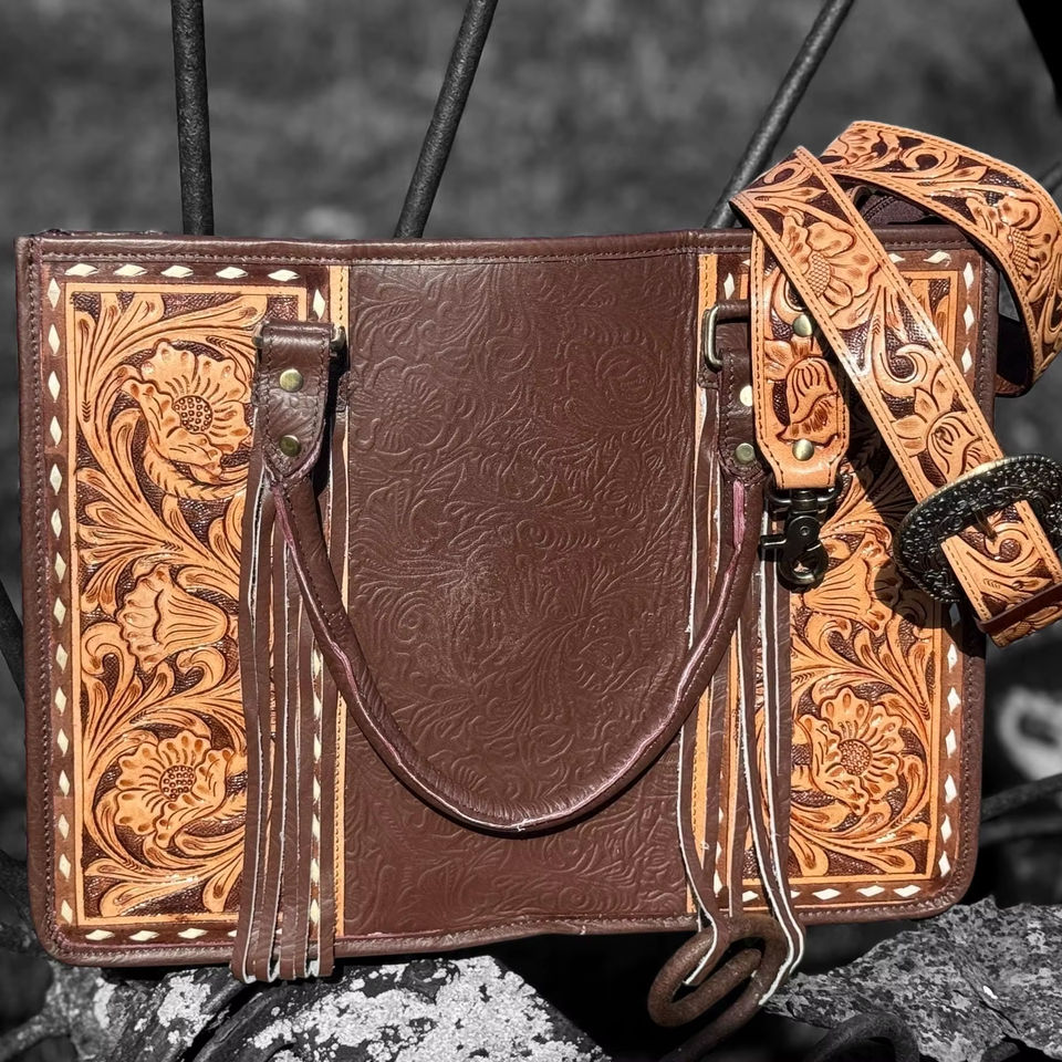 2025 Best Seller 100% Genuine Leather Vintage Lady Tote Purse Hand Tooled Florals Carving Light Weight High Quality Shoulder Bag