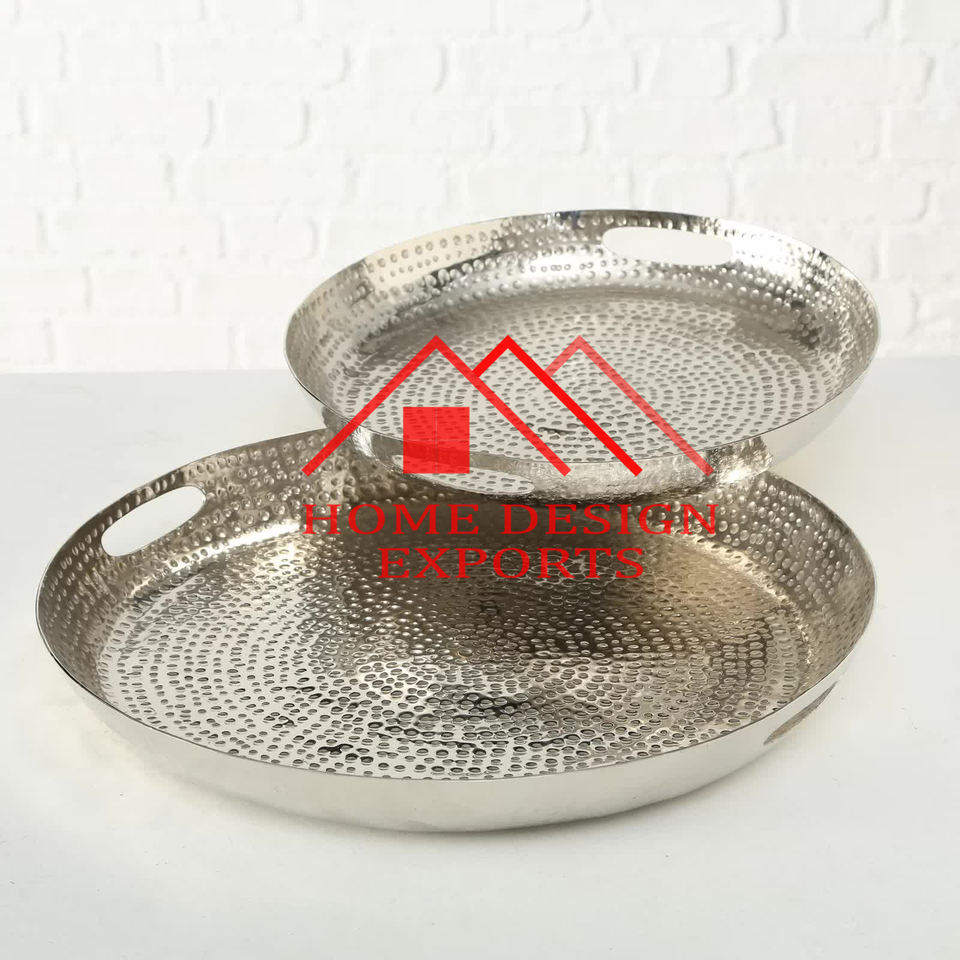 2025 Best Seller Metal Food Serving Tray In Hammered Design Metal Food and Drinks Serving tray