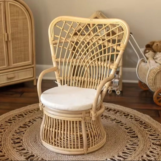 2025 Best Selling Comfortable Premium Quality Handwoven Rattan Royale Children's Chair With Mattress and Hidden Trunk