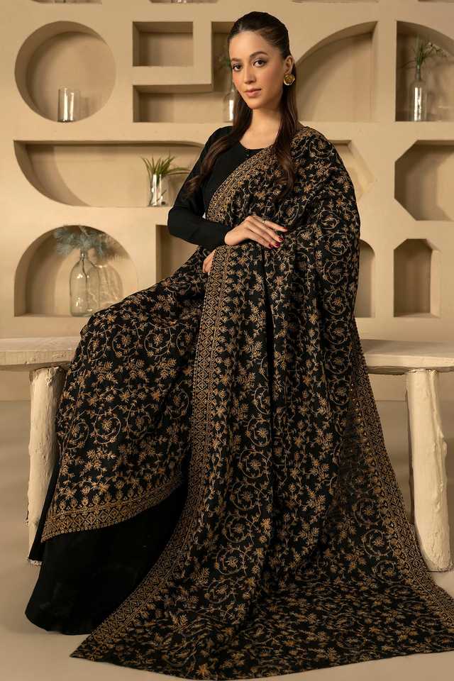 2025 Best Selling Embroidered Ladies Khaddar Shawl Shoulder Cover Unique Design Embroidered Heavy Weight Warm Long Khaddar Shawl