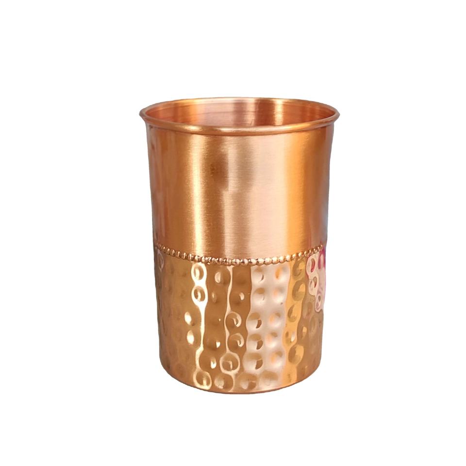 2025 Best-Selling High Quality Copper Glass Tumbler with Half-Lacquer Hammered Diamond Design Leak-Proof for India Best Sell