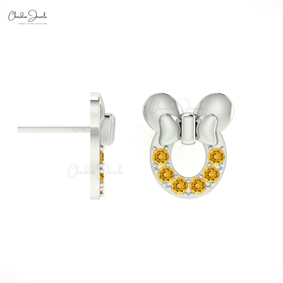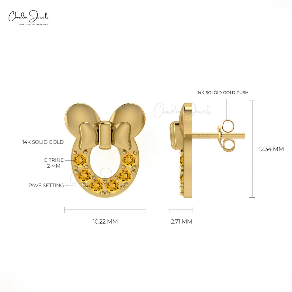 2025 Best Selling Products 2mm Brilliant Cut Citrine Gemstone Studs 14k Solid Gold Cartoon Kids Earrings Top Wholesale Suppliers