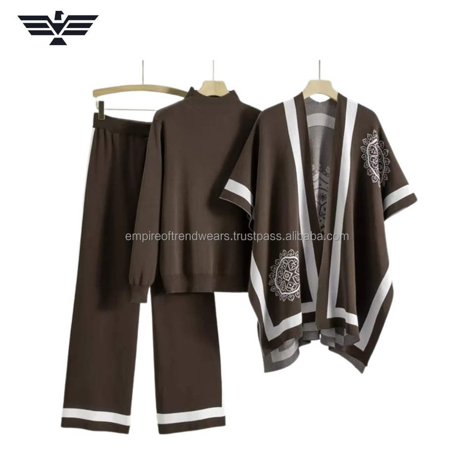 2025 Best Selling Women's 3 Piece Solid Pattern Casual Knitting Eco-Friendly Breathable for Set Pullover Wide Leg Pants Short