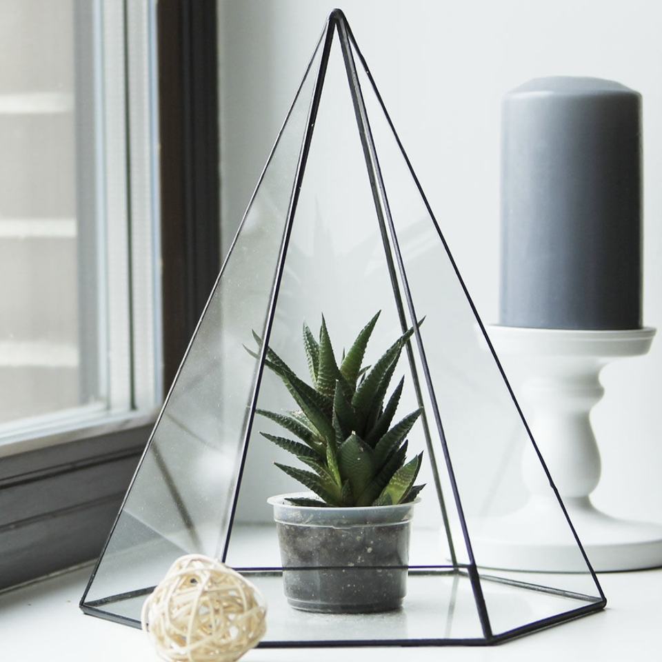 2025 Black Metal Framed Multipurpose Glass Terrarium for Home Christmas Decorations Candles & Plants Pyramid Shape Terrarium