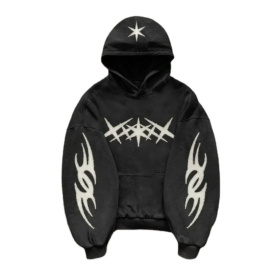 2025 Black Star Patch Winter Fleece 100% Cotton Regular Fit Embroidered Hooded Sweatshirt Streetwear Unisex Hoodie