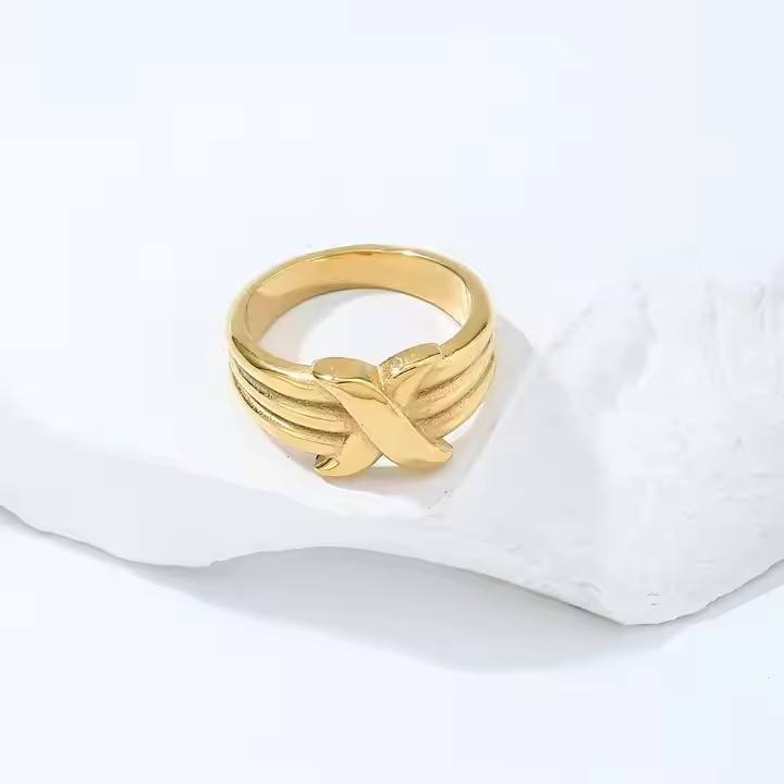 2025 Boutique Accessories Fashion Gifts Stainless Steel 18K Gold Plated Turkish Puzzle Wedding Ring X Knotting Rings Women