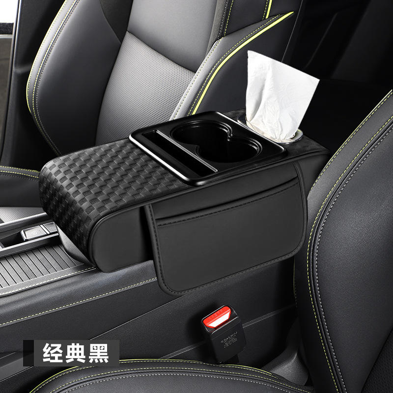 2025 Front Leather Car Armrest Box Cushion Height Pad Tissue Box Organizer Bag Cup Holder Integrated Storage Box