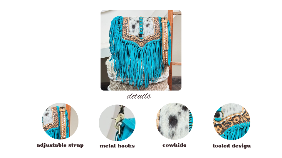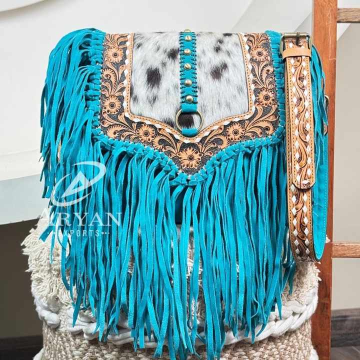 Product name:Hand Tooled Fringe Cowhide Leather Crossbody Messenger Bag