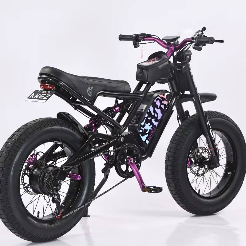 2025 Cheap Full Suspension Mountain Fatbike 1500w Fat Tire E-bike Hybrid Ebike 20inch Electric Dirt Bike Adult