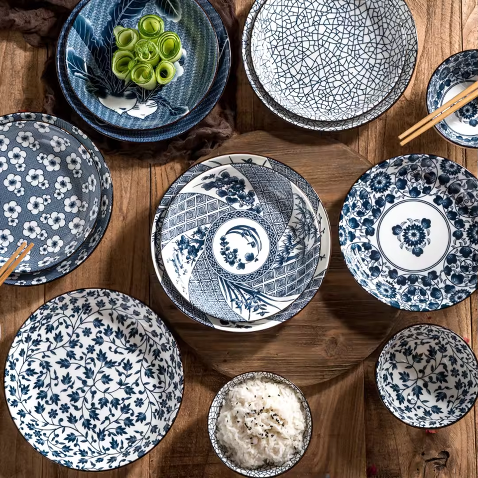 2025 China Hot Sale Japanese Porcelain Blue and White Ceramic Small Rice Porcelain 4.5 Inch Bowl Dish Gift Set