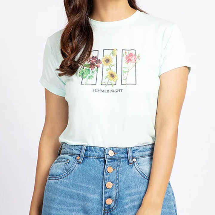 2025 Cowboys Printed Cap Sleeve Baby Tee Women's Crop Top Breathable Shirt Made in Pakistan