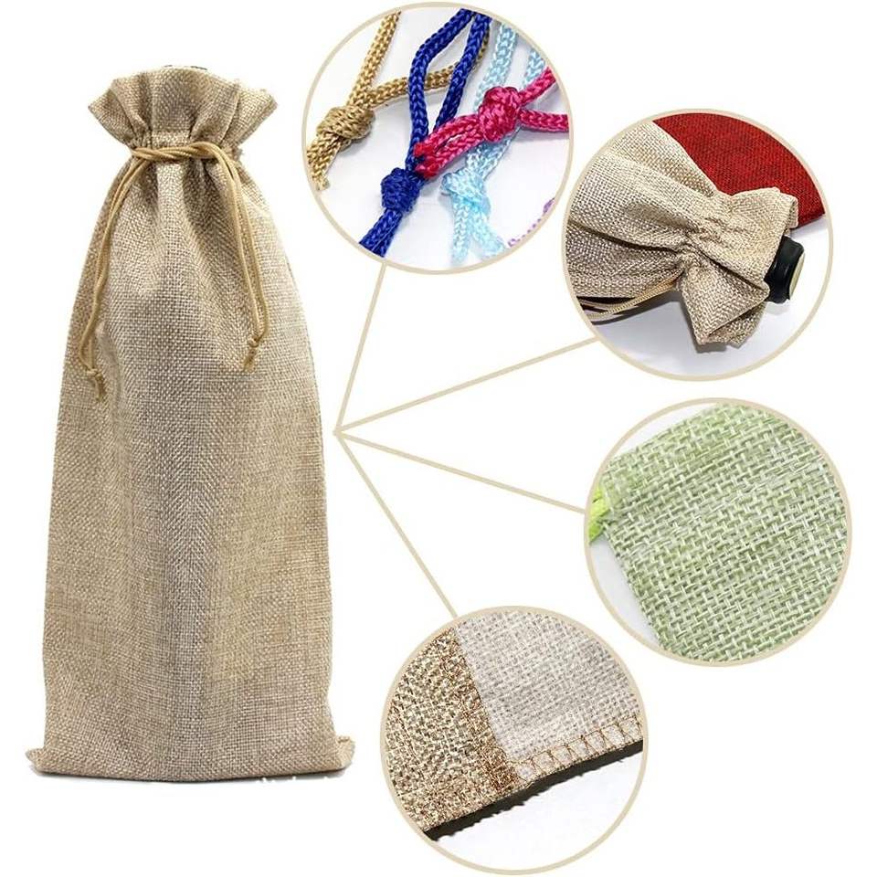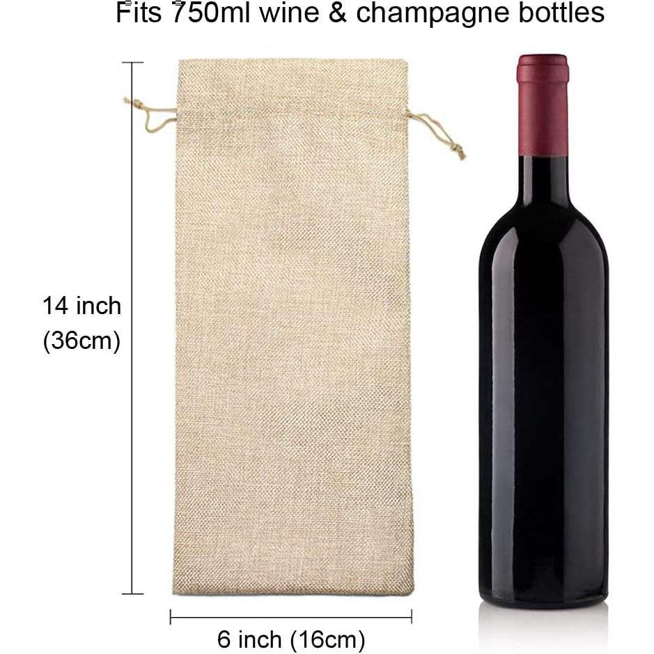 2025 Custom 12 PCS 14 X 6 Inch Burlap Wine Bottle Bags with Drawstring Add Logo Printing on 750ml Wine Wrapping Gift Bag