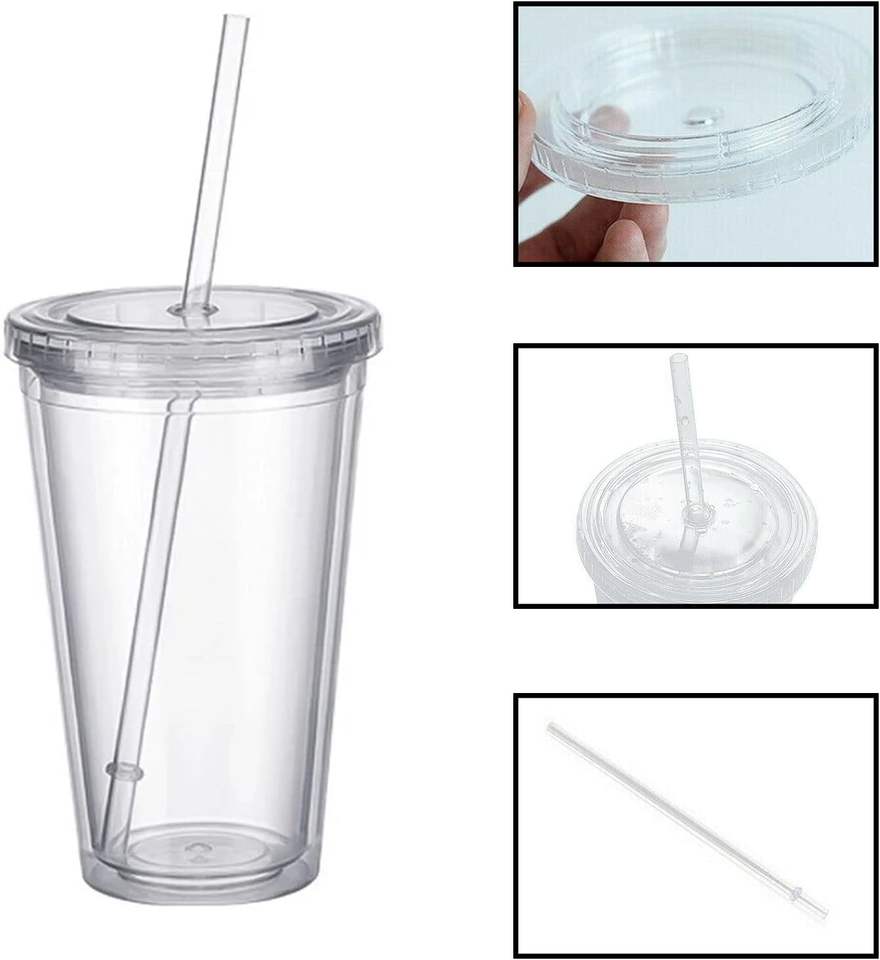 2025 Custom 16oz Plastic PS AS Acrylic Clear Tumbler Ice Coffee Double Wall Reusable Insulated Gifr Cup Mug with Straw and Lid