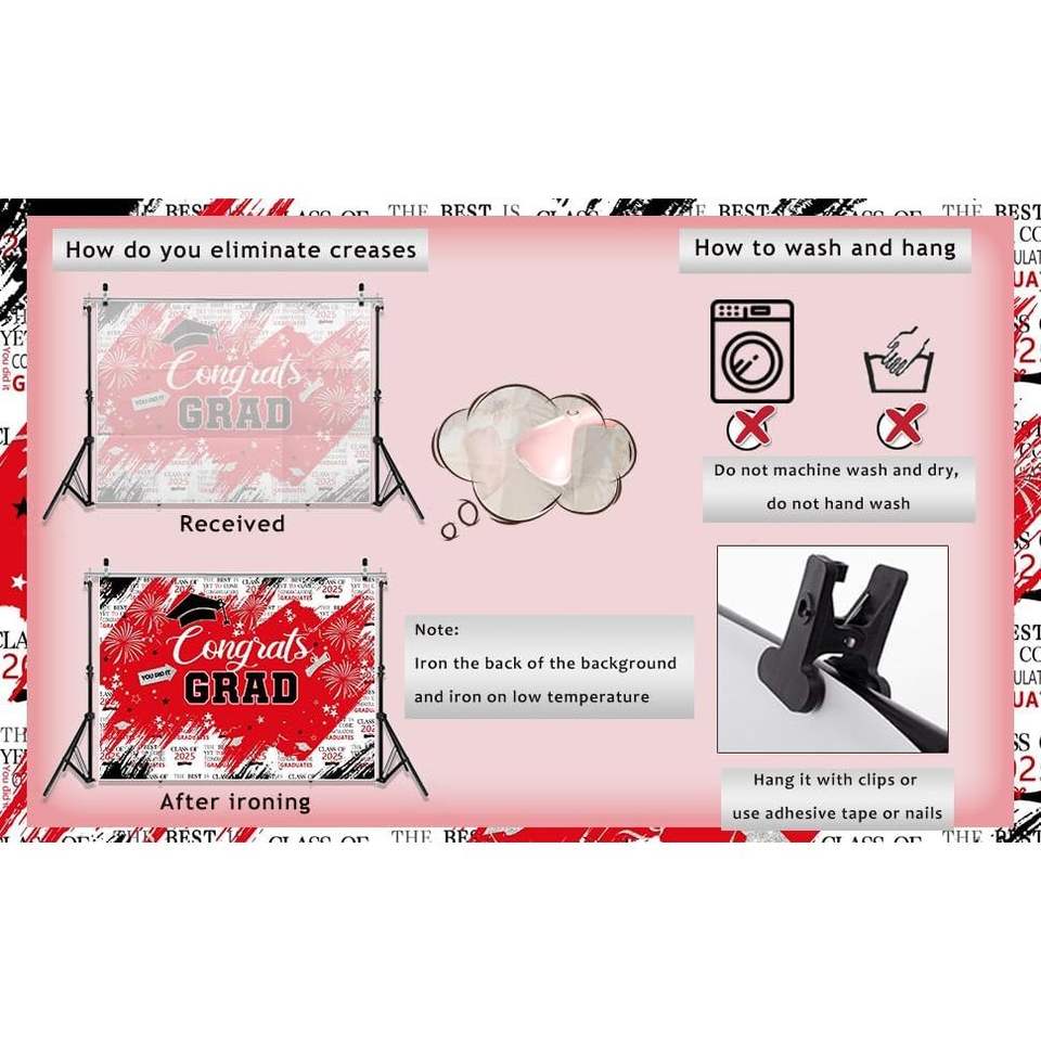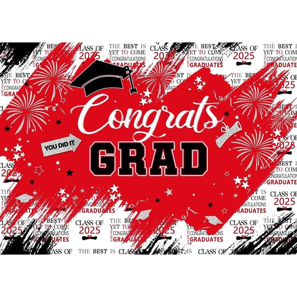 2025 Custom 7x5ft Red & Silver Congrats Grad Photo Backdrop X119 In-Stock Graduation Party Decor for Celebrations
