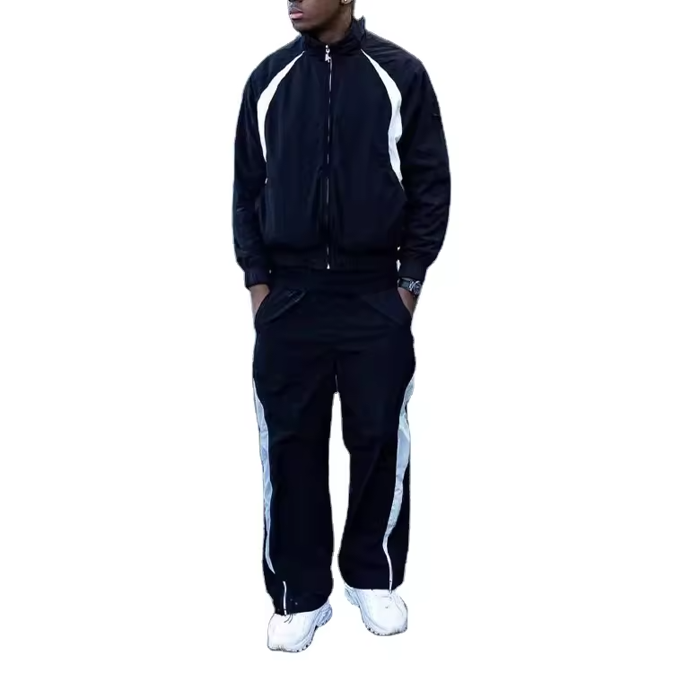 2025 Custom American Hip Hop Long-sleeved Casual Loose Suit 2-piece Sportswear Design Men Black and White Patchwork Suit