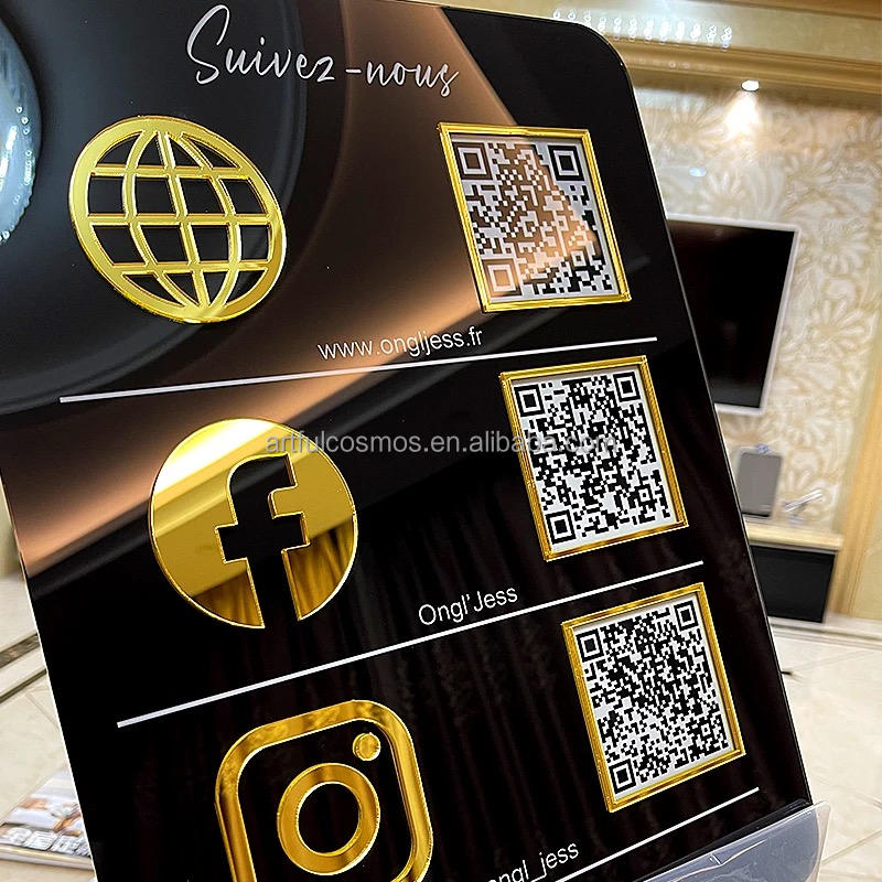 2025 Custom Attractive Table Top Business Instagram Social Media Sign Mirror QR Code Acrylic Social Media Sign