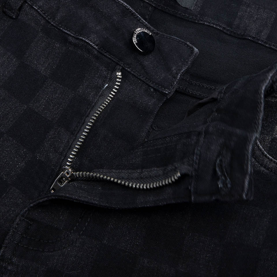 2025 Custom Black Straight Checkered Pattern Tight Jeans for Men Skinny Jeans