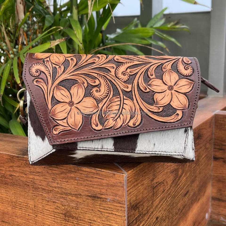 2025 Western Style Luxury Mini Crossbody Tooled Carving Leather Handbags Hair On Cowhide Leather Cute Women's Shoulder Bags