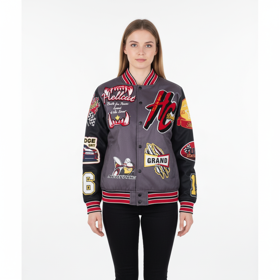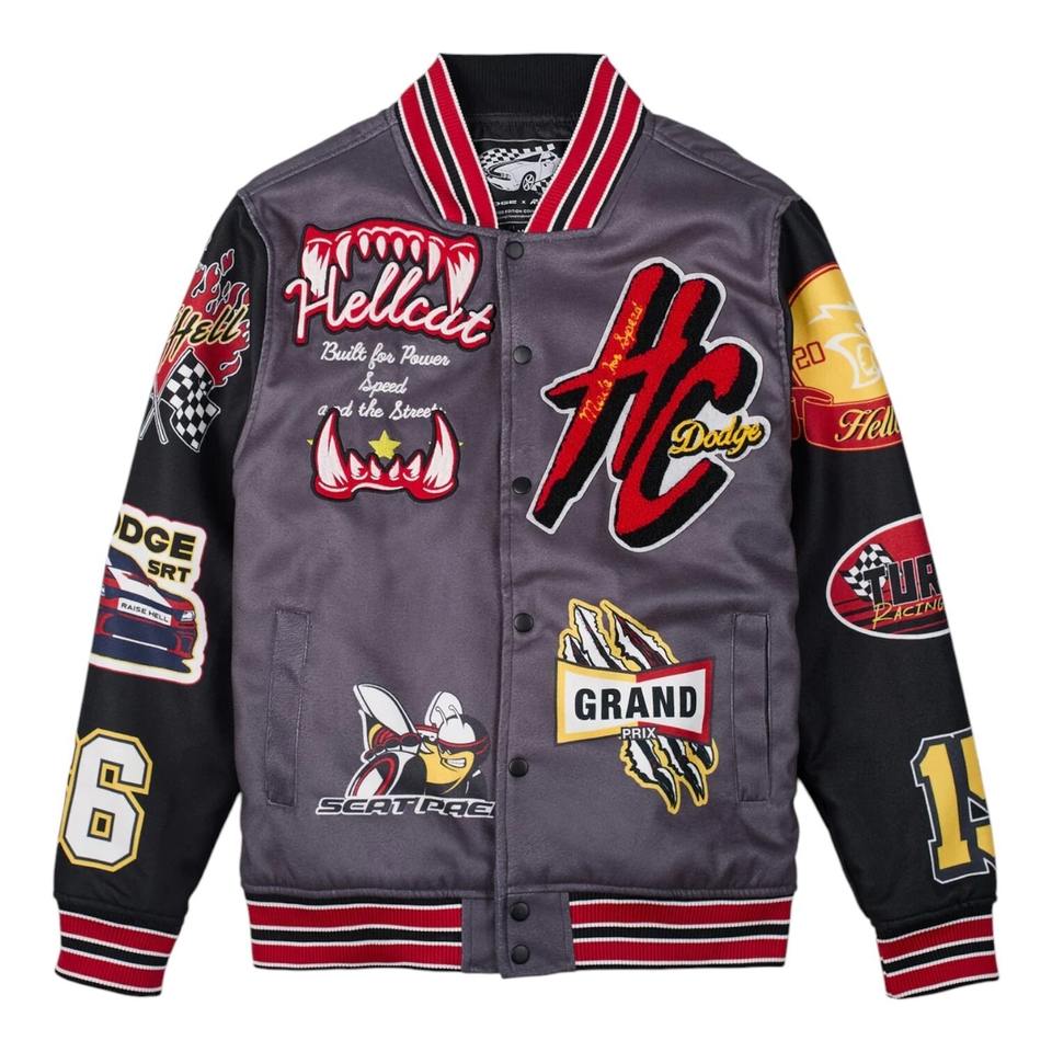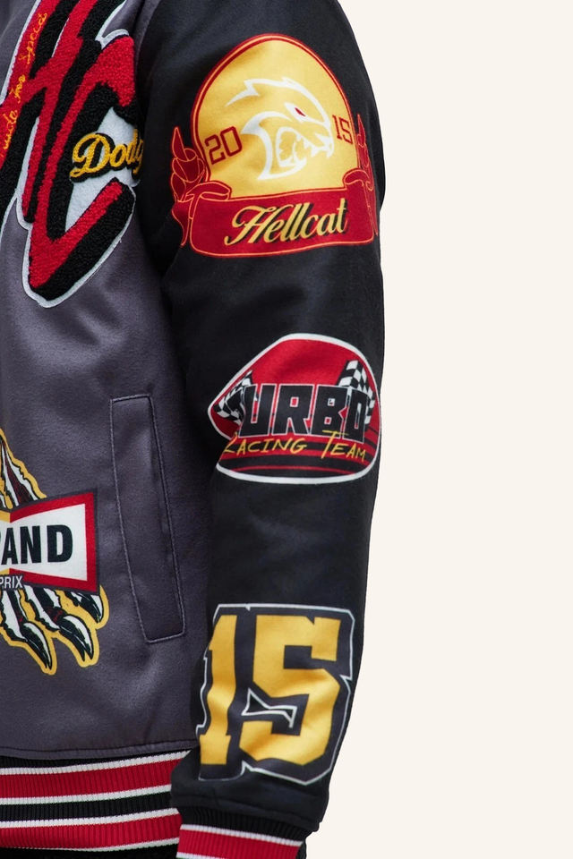 2025 Custom Dodge Hellcat Varsity Bomber Jacket & Street Racer Style with Embroidered Patches Grand Prix & Turbo Racing Design