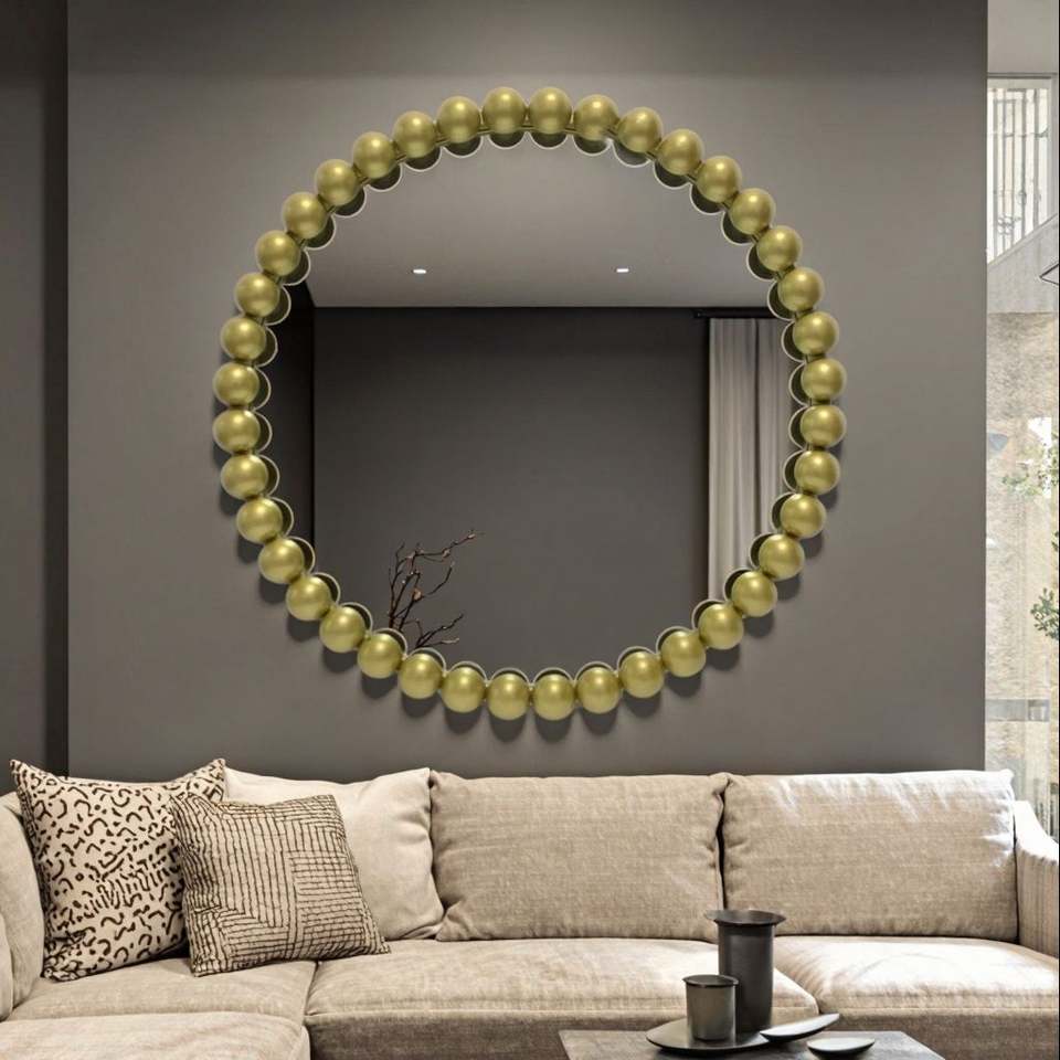 2025 Custom Gold Wall Mirror Nordic Toilet Room Table Circle Decorative Metal Ball Vanity Iron Baroque Inspired Framed Mirror
