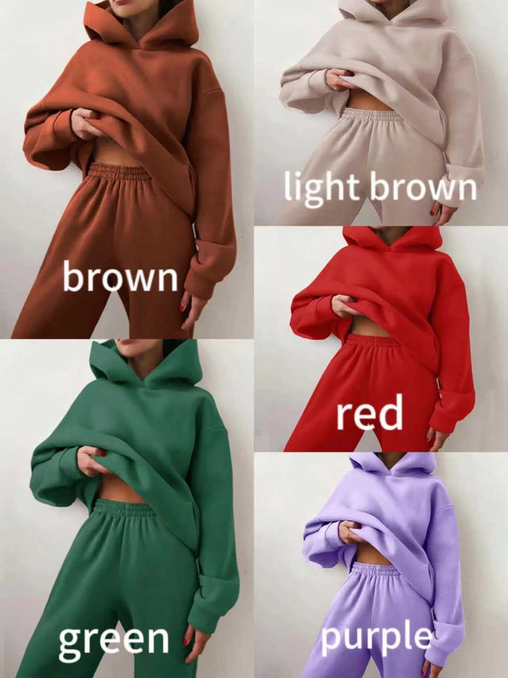 2025 Custom LOGO Blank Women 2 Piece Set Cropped Sweatshirt Long Sleeve Solid Hoodie and Sweatpants Set for Women