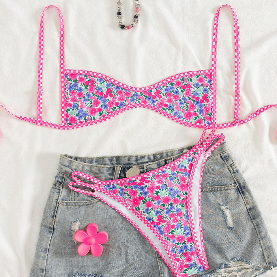 2025 Custom Logo Glitter Bikini Set Women Backless Purple Solid Color Quick Dry Beach Swimwear