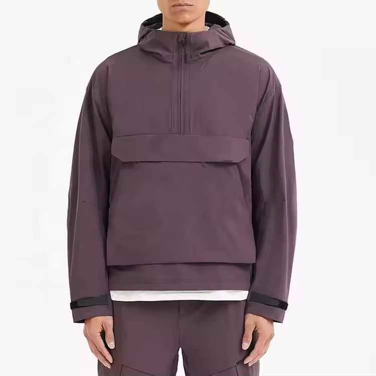 2025 Custom Logo Men's Casual Winter Pullover Jacket Waterproof Half-Zip Windbreaker with Big Front Pocket