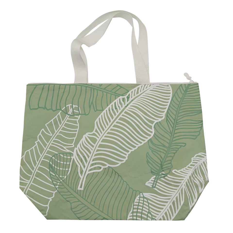 2025 Custom Logo Printed Dupont Tyvek Medium Handled Zipper Closure Beach Shopping Bag White