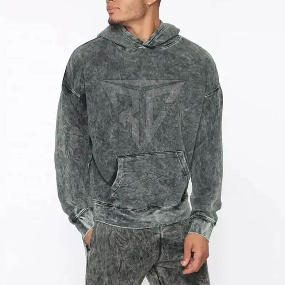 2025 Custom Logo Retro Style Solid Acid Wash Hoodie and Jogger Set Breathable Plus Size 100% Cotton Tracksuit for Men Winter