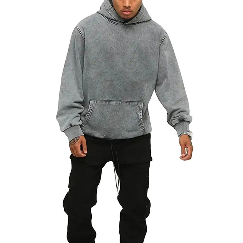 2025 Custom Logo Side Sleeves Stripe Distressed Acid Washed Cotton Heavyweight Mens Pullover Hoodies cotton blended