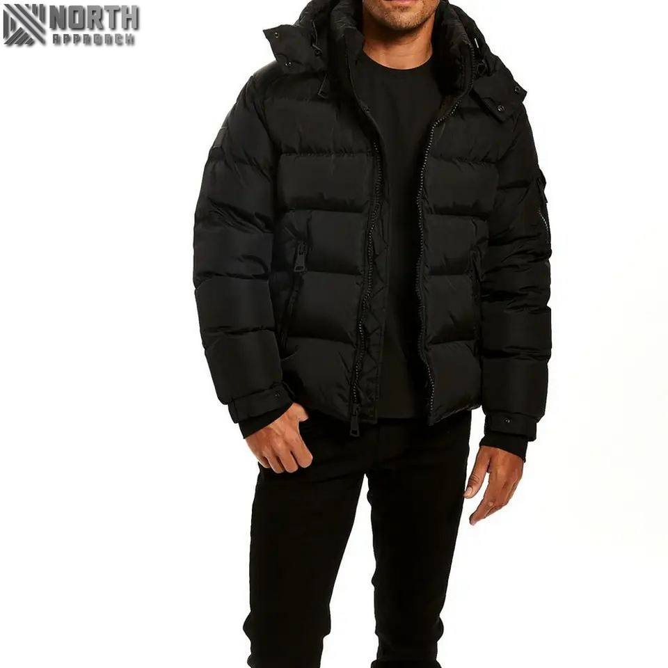 2025 Custom Made Men's High Quality Waterproof Winter Coat Hooded Puffer Jacket Polyester Fur Decoration Plain Solid Knitted