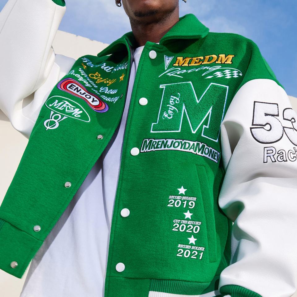 2025 Custom Men's Casual Sports Varsity Jacket Blanks Embroidery Stand Eco-Friendly Wool Shell Rhinestone Winter Button