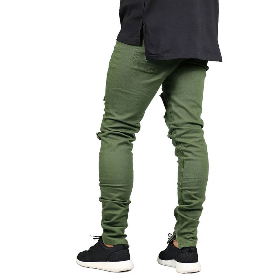 2025 Custom Men's Mid Waist Destressed Ripped Jeans Pants Lightweight Canvas High Fashion Casual Style Plus Size Jeans