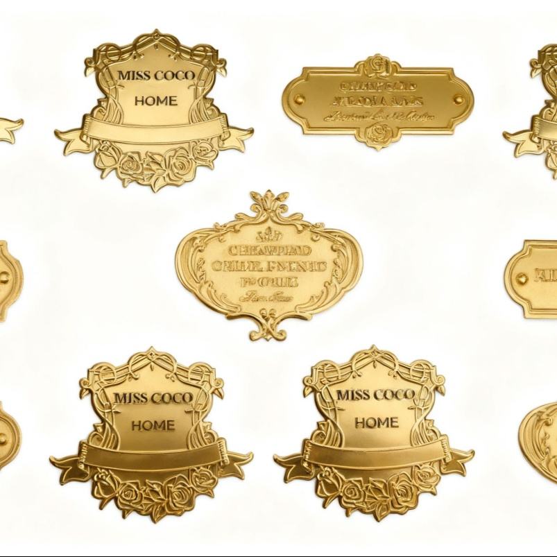 2025 Custom Metal Brand 3d Logo Transcripts Sticker Label Engraved Gold Selfadhesive Metal Label Sticker Perfume Matel Label