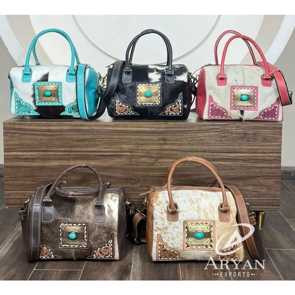 2025 Custom Mini Duffel Bag Hand Tooled Cowhide Leather Turquoise Stone Crossbody Luggage Travel Shoulder Bags for Men & Women