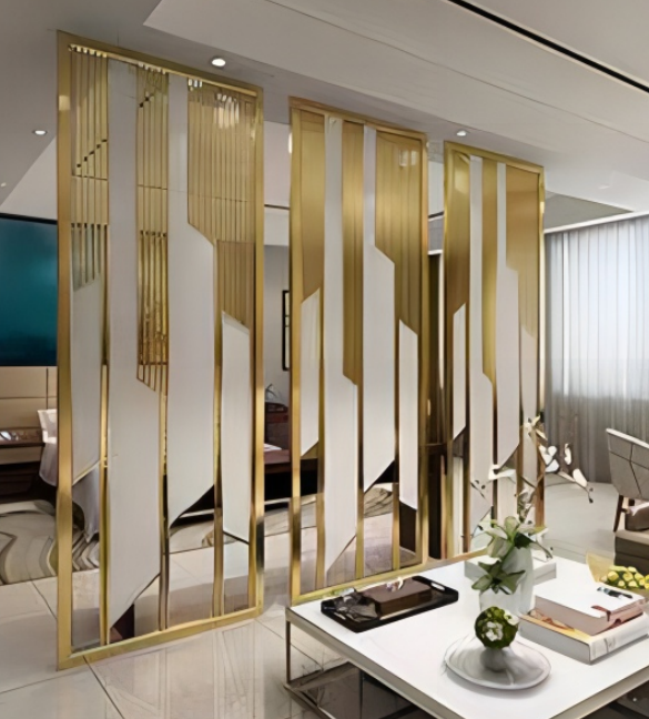2025 Custom Stainless Steel Dining Room Hotel Stainless Steel Decorative Screen Living Room Decoration Partition Wall Divider