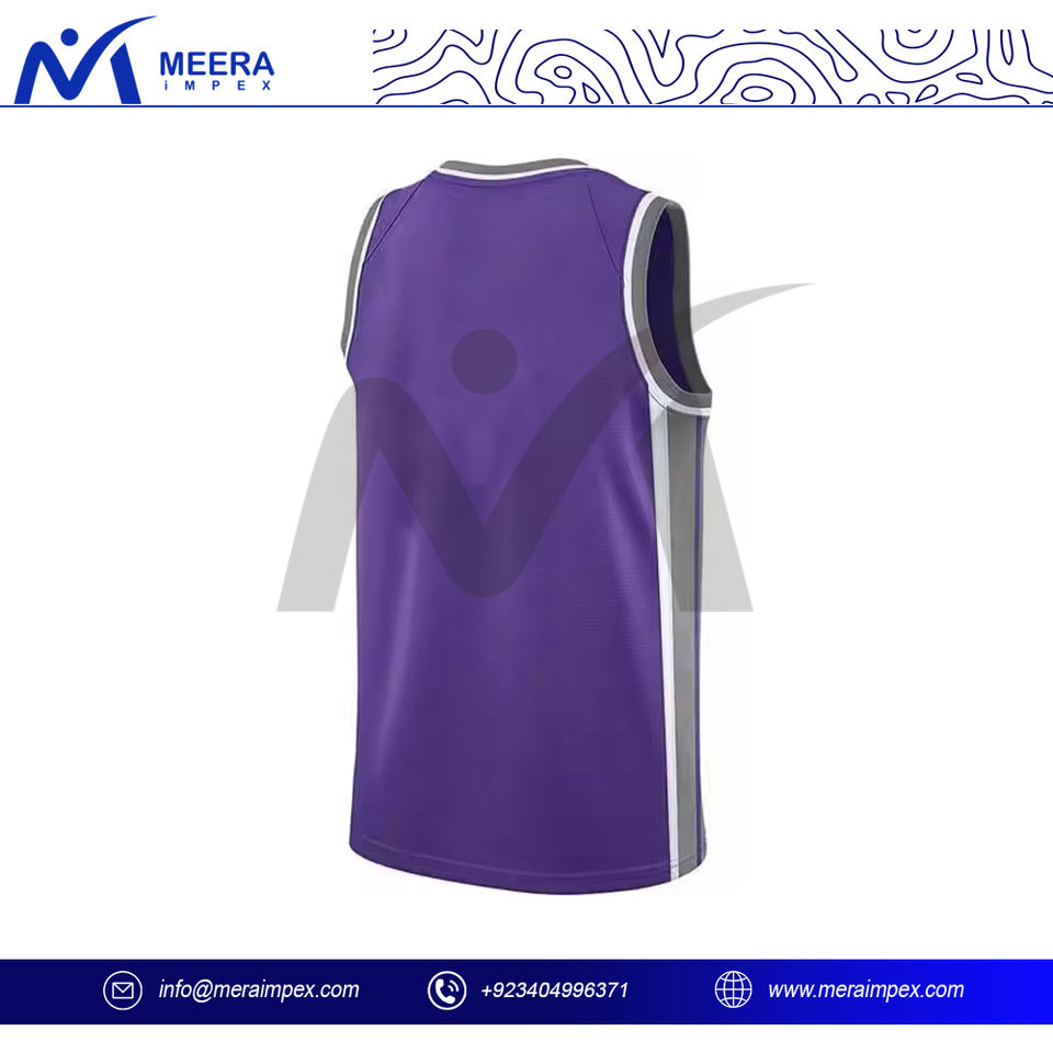2025 Custom Sublimated Basketball Jersey 100%Mesh Fabric Solid Purple & Grey Color Sleeveless Design Lightweight Jersey For Men