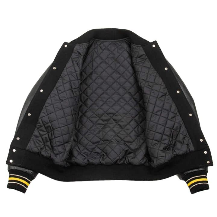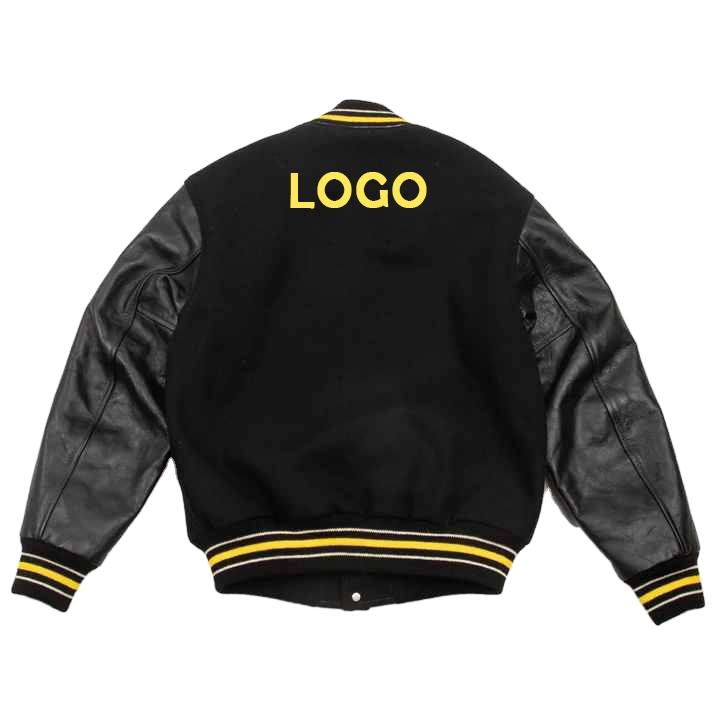 2025 Custom logo Men Women Varisty Letterman Bomber Jacket Wholesale Super Quality Dark Black Wool Jackets with Leather