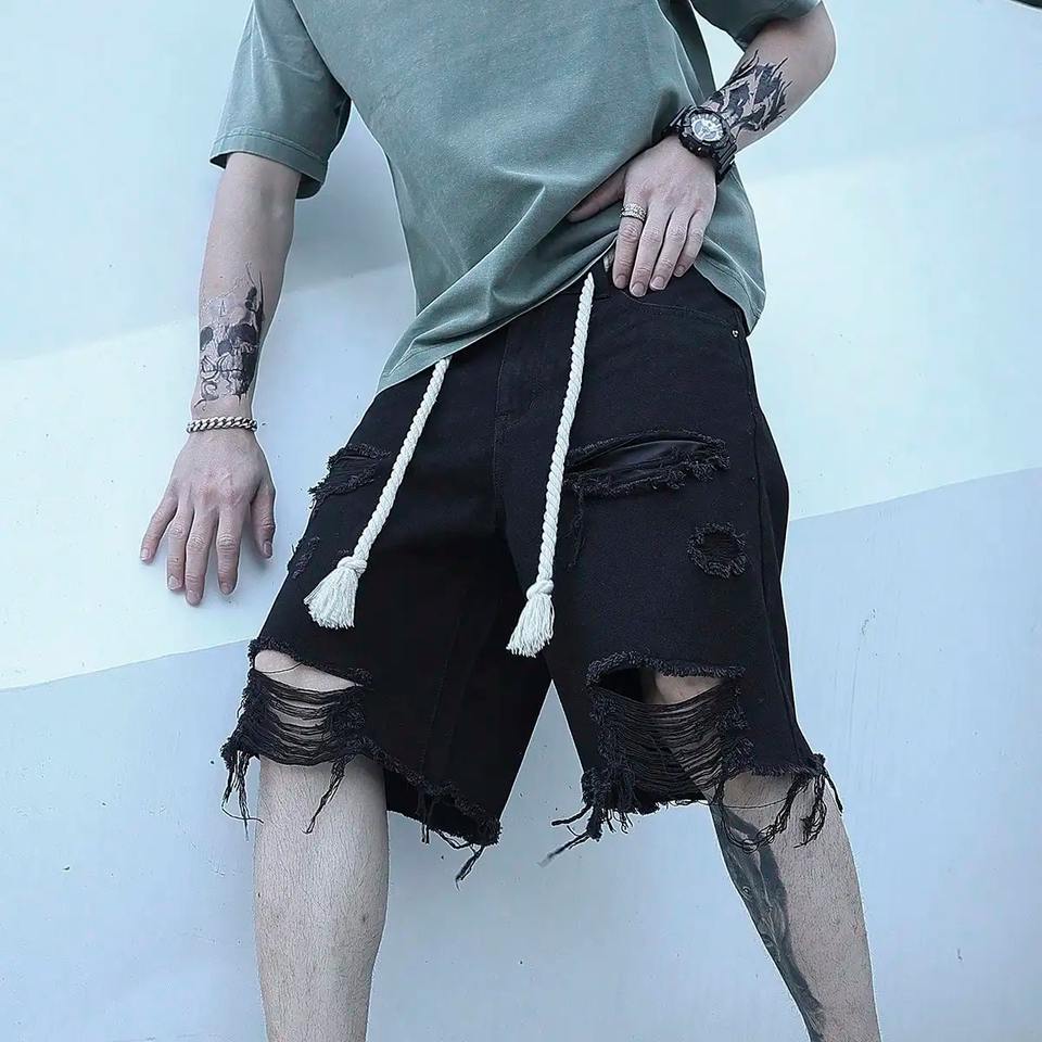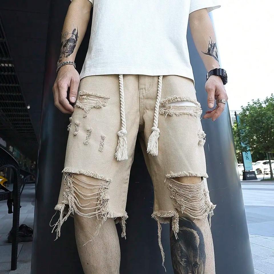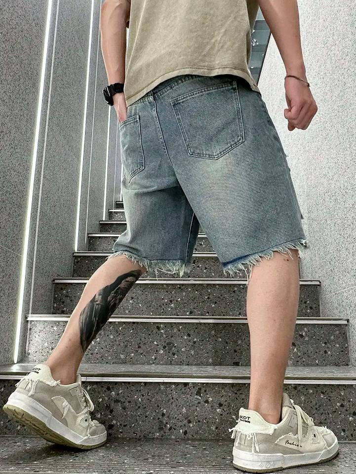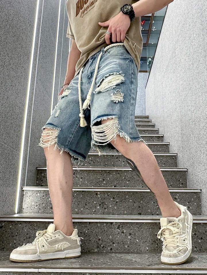 2025 Customizable Men's High Quality Breathable Denim Jorts Premium Stylish Washed Design Distressed Streetwear Party Rivet