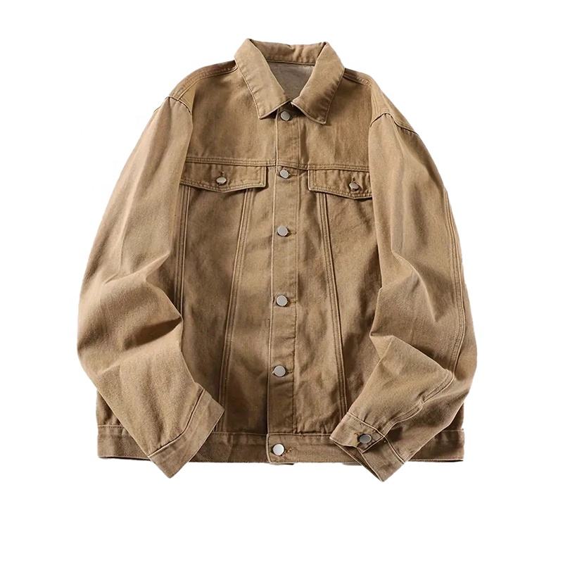 2025 Customized Logo Men's High Quality Stylish Brown Denim Jackets Sports Street Wear Jean Patches For Winter
