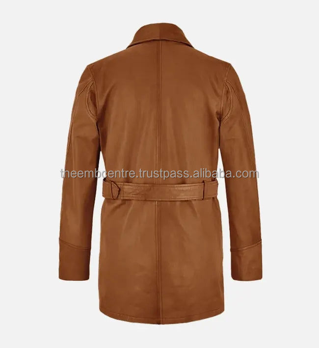 2025 Customized Men Clothing Casual Wears New Arrival Men's High Quality Men's Brown Leather Trench Coat jacket for men