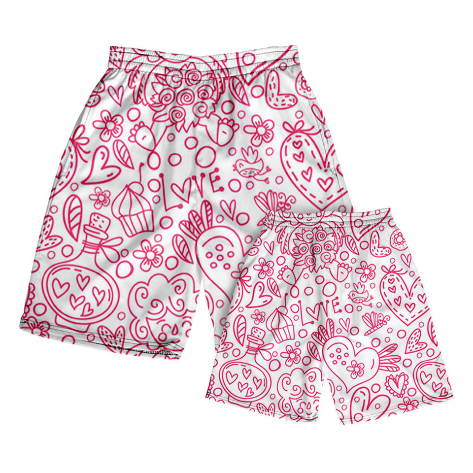 2025 Customized Men Shorts High Street Style Fashion Couple Heart Pattern Print Home Pants and Beach Pants